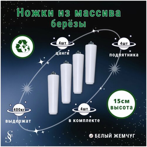Ножки для мебели / Опоры для мебели деревянные 15см (белый жемчуг)