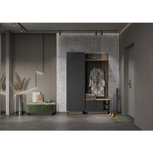 Вешалка настенная ВШ01, Даллас, фасад МДФ Софт Графит/ корпус ЛДСП Дуб Каньон