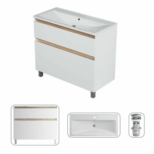 Тумба с раковиной в ванную AM.PM с донным клапаном хром, напольная, 100 см, 2 ящика, функциональный органайзер, высококачественная эмаль