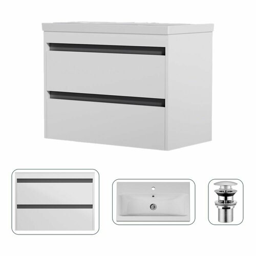 Тумба с раковиной в ванную AM.PM с металлическим донным клапаном, 75 см, подвесная, 2 ящика, система мягкого закрывания soft close, эмаль