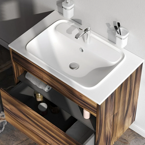 Готовый комплект: тумба с раковиной и донным клапаном! Хотите выделиться при ограниченном бюджете? Трендовый дизайн мебели для ванной комнаты Gem не уступает комплектам по гораздо более высокой цене. Впервые в доступном сегменте: фурнитура push-to-open последнего поколения. Удобный демонтаж без использования инструментов и легкая регулировка ящиков: благодаря надёжному соединению направляющей и ящика при помощи особого фиксатора. Экологически чистые и удивительно долговечные полиакриловые эмали – специальная технология покраски в 7 слоев превосходит технологию нанесения автоэмали у ведущих немецких марок и обеспечивает насыщенный цвет в течение всего срока службы (от 10 лет). Максимально возможная нагрузка на ящик в сегменте: выдерживает до 35 кг. Компактная и вместительная: благодаря узкой проекции и глубоким ящикам. Впервые дизайнерская мебель в сегменте средний эконом (от английского дизайн - агентства Danelon