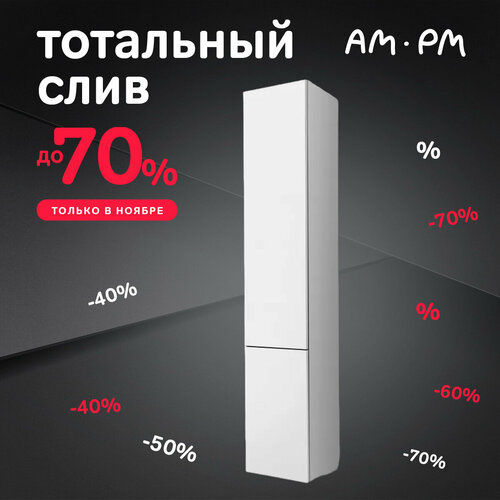 Шкаф-пенал для ванны подвесной AM.PM GEM левый, 30 см, двери push-to-open, глянец