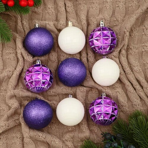 Набор шаров пластик d-5,5 см, 9 шт Рузи грани, белый фиолетовый