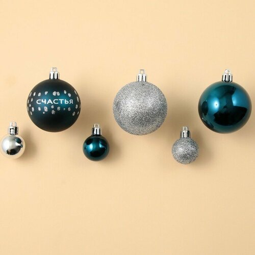 Набор eлочных шаров, пластик, 15 шт, d-3 и d-6, синий и серебро
