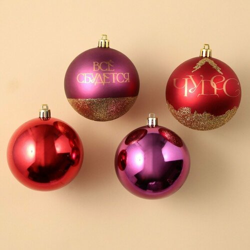 Набор eлочных шаров Чудес, пластик, d-8, 4 шт, винный, красный и золото