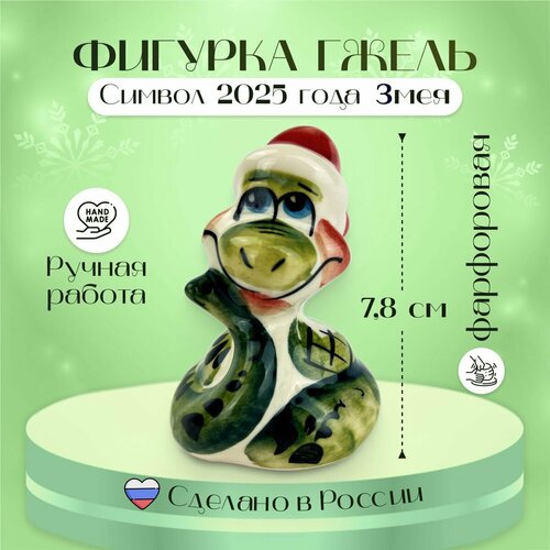 Змея гжель цветная, 7,8 см, гжель, Символ года 2025, коллекционный сувенир, подарок на Новый год, рождество