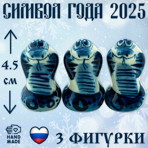 Сувенир Фигурка Змея Малыш 4.5 см 3 штуки (Гжель) Символ года 2025