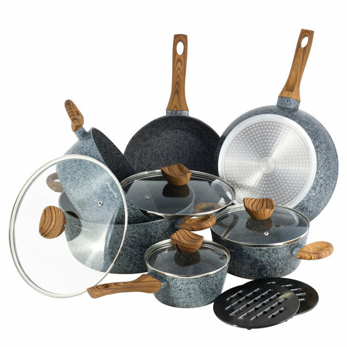 Набор посуды 12 предметов Kamille KM-4440 из алюминия с мраморным покрытием