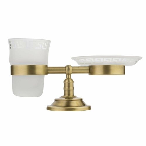 Держатель со стаканом и мыльницей настольный Migliore Mirella матовое стекло с декором/бронза