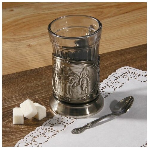 Стакан с подстаканником Кольчугинский мельхиор Охотники, латунь