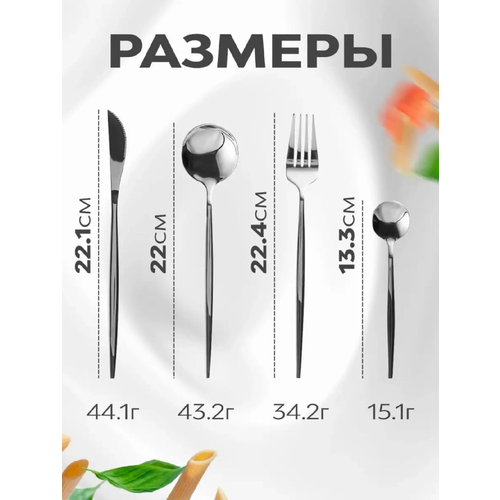 нерж. стальАртикул № 661248 Набор столовых приборов Maison Maxx Stainless Steel Modern Flatware Set Набор изготовлен в лучших европейских традициях из качественной пищевой нержавеющей стали. Приборы отличаются отменной прочностью, превосходными эстетическими характеристиками и исключительным удобством в использовании. Набор столовых приборов Maison Maxx Modern Flatware Set создан для тех, кто ценит эстетичность во всем и не привык отказывать себе в празднике. При помощи данного сета, каждый из пользователей сможет своими руками создать праздничную атмосферу, не выходя из дома. Набор включает в себя четыре предмета: нож, вилку, столовую ложку и чайную ложку. Сет упакован в стильную, эстетичную коробку, что позволяет сделать его отличным подарком для родных и близких. Высокое качество Все предметы из набора Maison Maxx Modern Flatware Set выполнены из нержавеющей высококачественной стали 304. Этот материал устойчив к различного рода повреждением. В том числе: коррозия, царапины, а также иные виды физического воздействия
