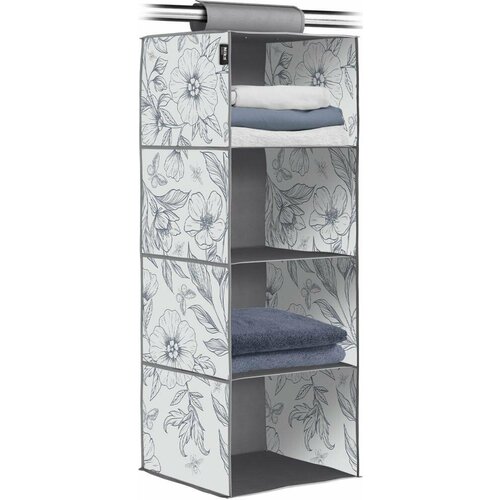 Кофр подвесной для хранения Nika КФ1/Ц цветы на сером, 4 секции, 30х30х84 см