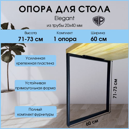Подстолье (опора) ELEGANT для стола из металла в стиле Лофт 60x71-73 см/ 1 шт/ Черное / ножки для стола мебельные регулируемые