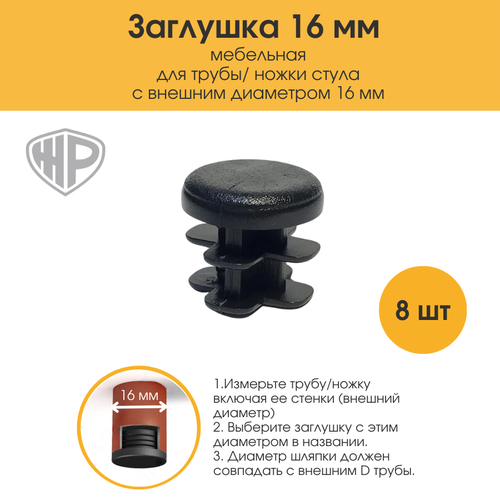 Заглушка наружная 16 мм для ножек стула. Заглушка мебельная для круглой трубы (16 шт)