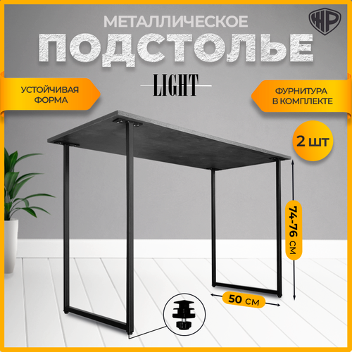 Опора для стола Light 50 x 74 см, 2 штуки, подстолье из металла, лофт, черное