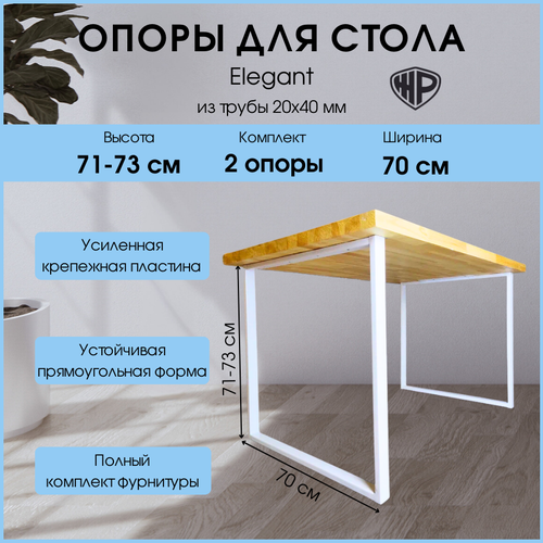 Подстолье (опора) ELEGANT для стола из металла в стиле Лофт 70x71-73 см/ 2 шт/ Белое / ножки для стола мебельные регулируемые