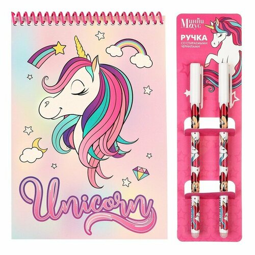 Подарочный набор: блокнот А5 и 2 ручки пиши-стирай, Минни единорог