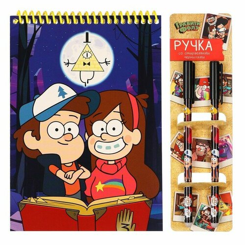 Подарочный набор: блокнот А5 и 2 ручки пиши-стирай, Гравити фолз