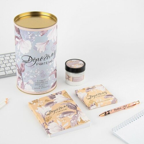 Подарочный наборв тубусе: ежедневник, крем для рук, ручка, блок бумаги "Дорогому учителю"