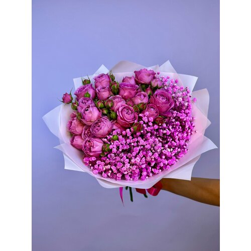 Букет из Пионовидные розы с гипсофилой Малиновое наслаждение 102453093947