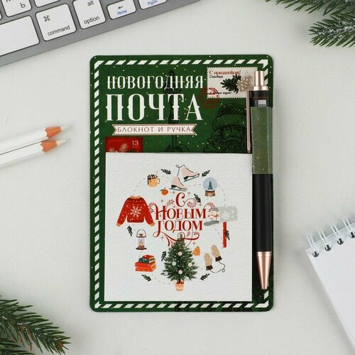Подарочный набор блокнот 90х90 и ручка пластик автоматическая "Новогодняя почта" 7855253