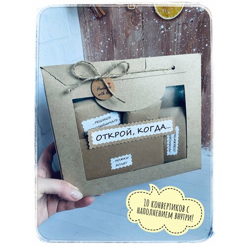 Любимой дочке!» Возрастная категория -от 16 лет Представляет собой коробочку , внутри которой 8 подарочных прикольных по содержанию и наполнению конвертов!Варианты конвертов и их наполнения:☑️ Открой, когда нужно освежиться - влажные салфетки☑️ Открой, когда все лень - сникерс и записка «Не тормози! Сникерсни!»☑️ Открой, когда требуется подзарядка - батарейки и записка «
