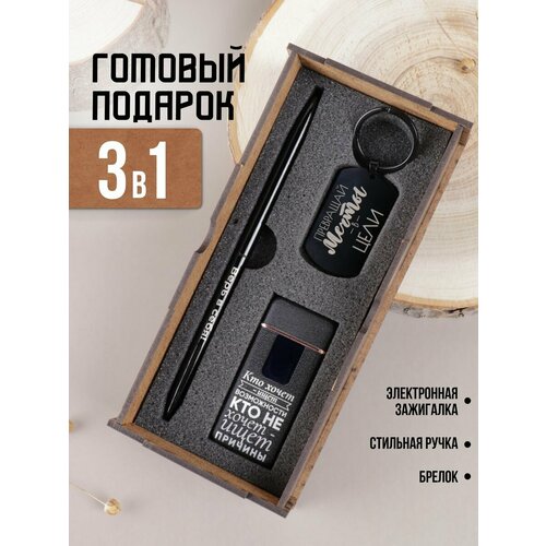 Подарочный набор на 23 февраля мужчине - это готовый бокс, который включает в себя обложку на документы, стильная ручка с гравировкой, подобранные с учетом различных потребностей и предпочтений.