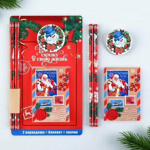 Подарочный набор: блокнот, карандаши ч/г 2 шт и значок «Впусти сказку в свою жизнь»