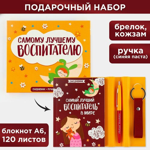 Подарочный набор «Самый лучший воспитатель в мире»: ежедневник А6, 120 л, брелок, ручка