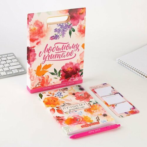 Подарочный набор: ежедневник, стикеры, ручка шариковая, синяя паста «Любимому учителю» (комплект из 3 шт)