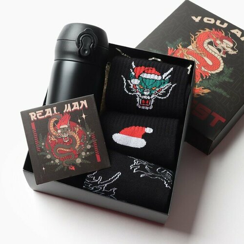 Подарочный набор термос и носки 3 пары KAFTAN "Дракон", р. 41-44 (27-29 см)