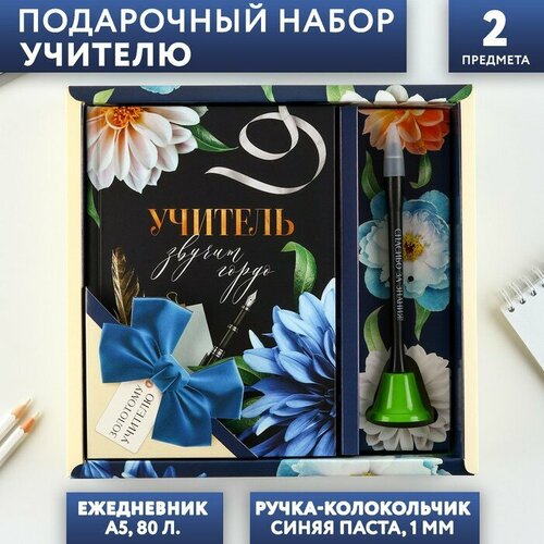 Подарочный набор «учитель звучит гордо»: ежедневник и ручка-колокольчик (шариковая, синяя паста, 1 мм)