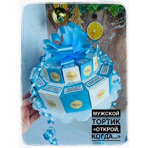 Тортик "Открой, когда." унисекс- креативный, небанальный подарок девушке/парню, женщине/мужчине, маме/папе, бабушке/дедушке, подруге/другу по поводу и без! Представляет собой 2 яруса из 24 порционных кусочков с шутливым названием и не менее шутливым содержанием. Например, варианты кусочков (1 ярус):- Открой, когда нужно освежиться - внутри влажные салфетки- Открой, когда все не клеится - внутри клей-момент в блистере - Открой, когда нужно взбодриться - внутри порционный кофе 3-в-1- Открой, когда хочешь расслабиться - внутри бомбочка-шипучка для ванной.- Открой, когда нужен перекус - внутри чашка супа / кашка овсянаяНу и т. д. в подобном духе.