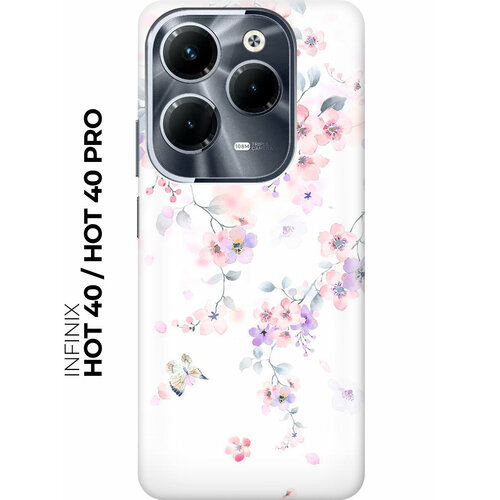Силиконовый чехол на Infinix Hot 40 / Hot 40 Pro / Инфиникс Хот 40 / Хот 40 Про с рисунком "Акварельные цветы вишни"