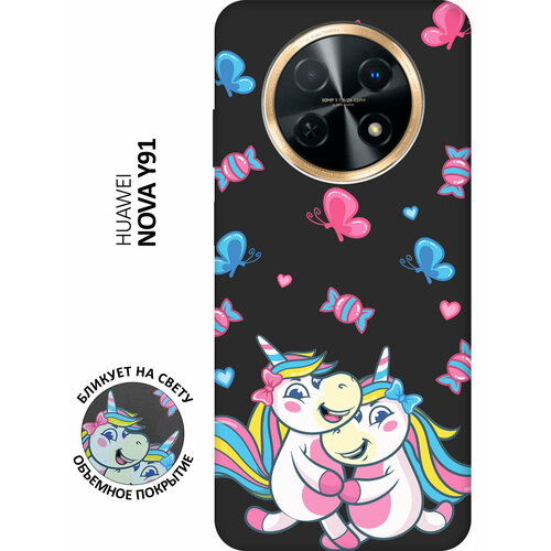 Матовый чехол Unicorns and Candies для Huawei nova Y91 / Хуавей нова У91 с 3D эффектом черный