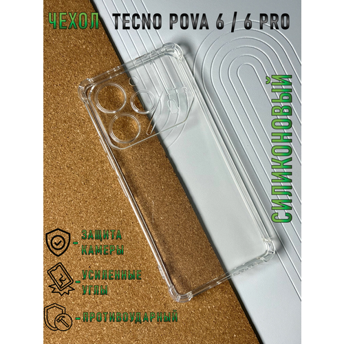 Чехол для Tecno Pova 6/6 Pro 5G (Техно Пова 6/6 Про 5G) противоударный / с защитой камеры , прозрачный
