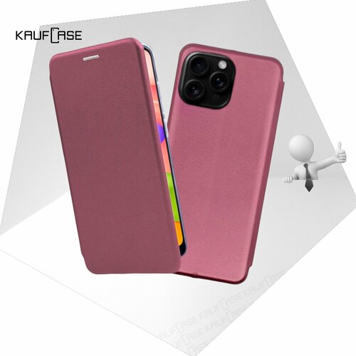 Чехол книжка для телефона Apple iPhone 16 Pro Max (6.9"), бордовый. Текстура под кожу