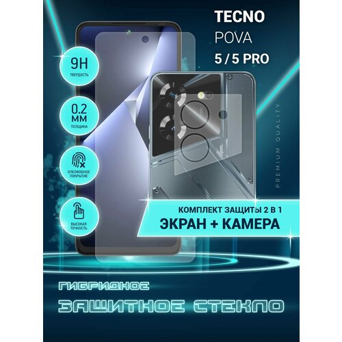 Защитное стекло для Tecno Pova 5, Tecno Pova 5 Pro на экран и камеру, гибридное (пленка + стекловолокно), Crystal boost