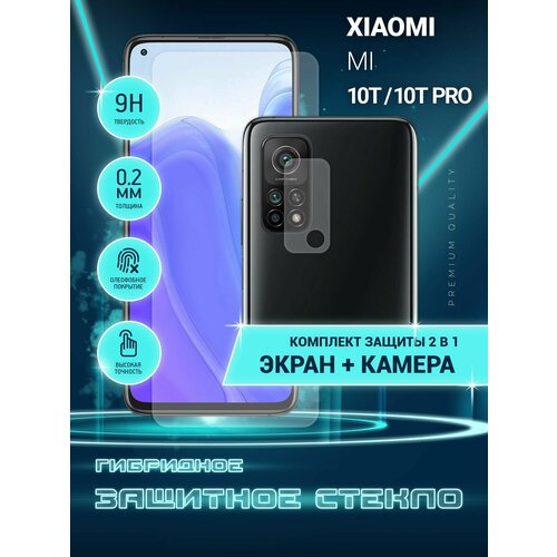 Защитное стекло для Xiaomi Mi 10T, Xiaomi Mi 10T Pro, Xiaomi Mi 10T 5G на экран и камеру, гибридное (пленка + стекловолокно), Crystal boost