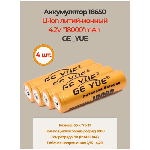 Аккумулятор li ion 18650/ 4,2V, 18000mAh / литий ионная аккумуляторная батарея GE_YUE/4шт.