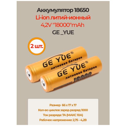 Аккумулятор li ion 18650/ 4,2V, 18000mAh / литий ионная аккумуляторная батарея GE_YUE/2шт