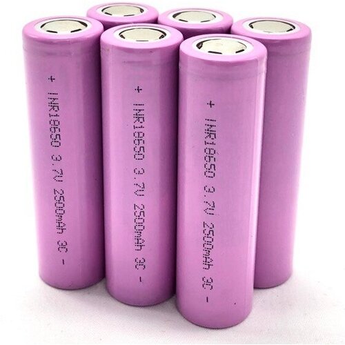Аккумулятор Li-ion INR18650 2500mAh 3,7v 3C внутреннее сопротивление 41-46 мОм 6шт