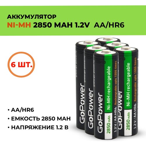 6шт. Аккумулятор GoPower 2850 мАч, АА/HR6, 1.2 В