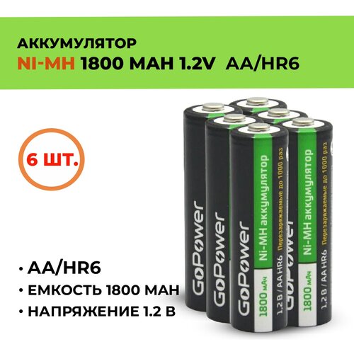 6шт. Аккумулятор GoPower 1800 мАч, АА/HR6, 1.2 В