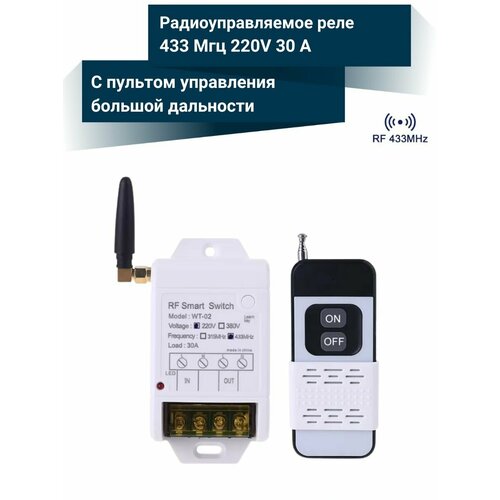 Беспроводной релейный переключатель, радиореле с антенной 220В 30А 433МГц + пульт дистанционного управления для бытового и промышленного оборудования