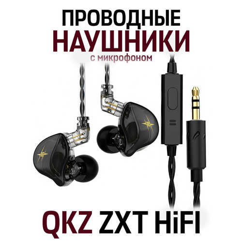 Наушники-мониторы QKZ ZXT с гарнитурой Басс Спорт - Hi-Res Аудио, прозрачный