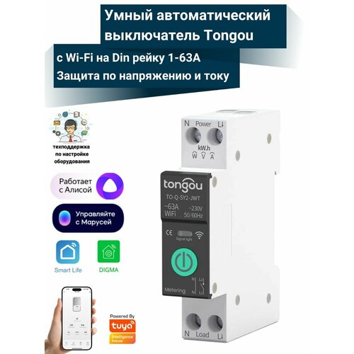 Умный автоматический выключатель Tongou TO-Q-SY2-JWT с WiFi на Din рейку 1-63A