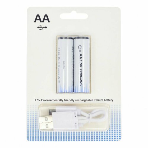 Батарейка аккумуляторная AA LR6 + кабель Type-C (блистер) В упаковке: 2 шт, Емкость: 450 мАч