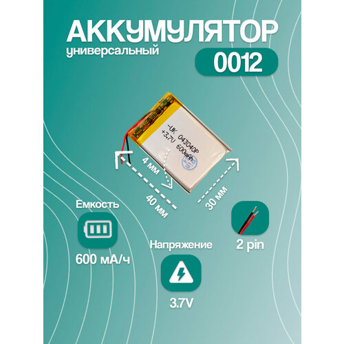 Аккумулятор универсальный 0012 (40*30*4 мм / 3.7V / 600 mAh)