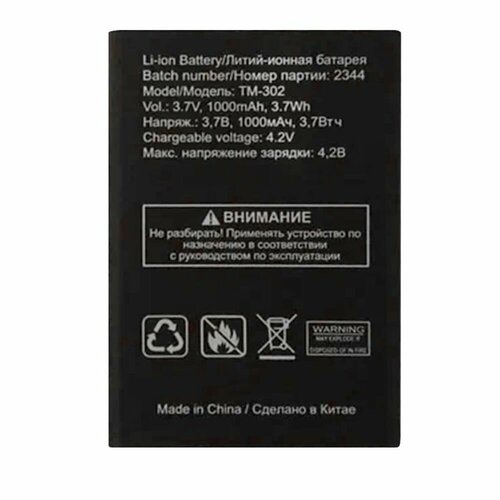 Аккумулятор / батарея для смартфона TEXET TM-302 / 3,7V / 1000mAh / 3,7Wh